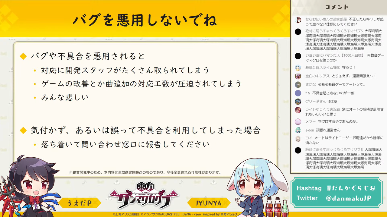 当たり前ですが、バグの悪用は厳禁です。
