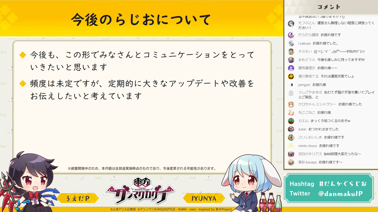 今回の「だんかぐだんちょうのだべりらじお」は「東方ダンマクカグラ」がリリースされてから初の放送となります。