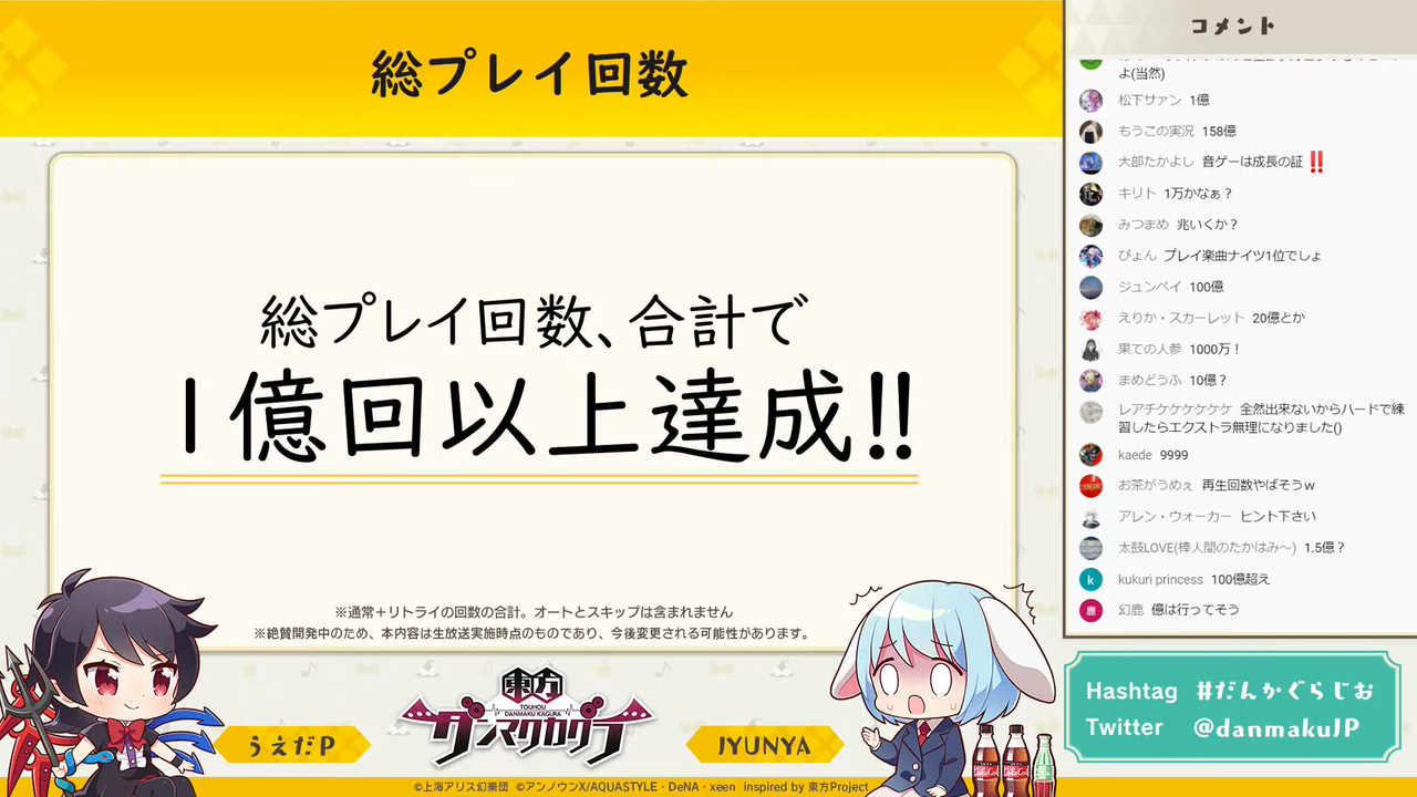 なお、「東方ダンマクカグラ」では、これまでに1億回以上プレイヤーがダンマクカグラ(リズムゲーム)をプレイしたとのことです。