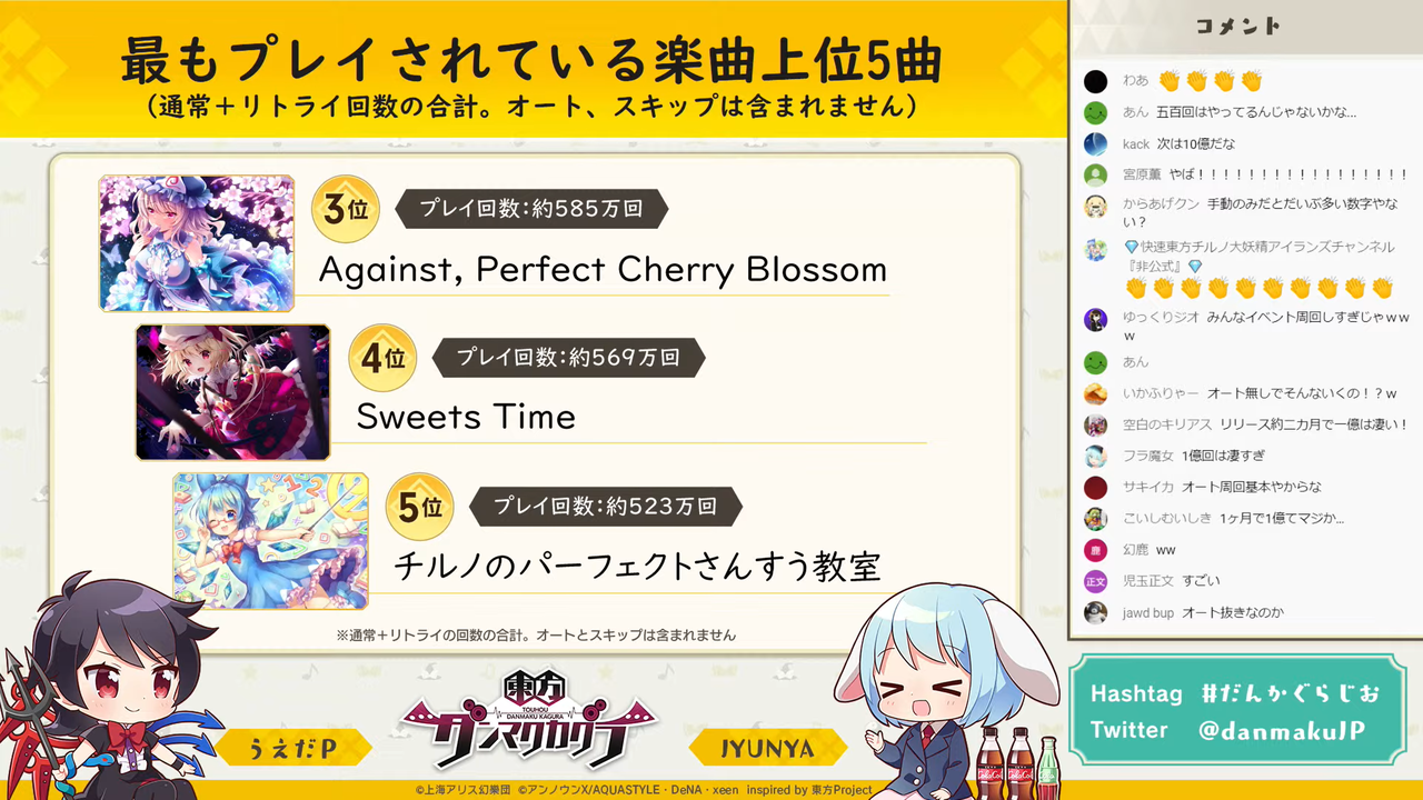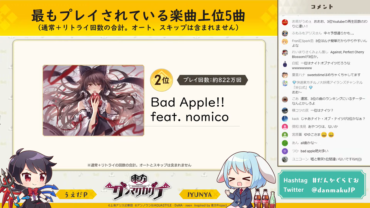 そして、栄えある「東方ダンマクカグラ」で最もプレイされた楽曲は「ナイト・オブ・ナイツ」でした。