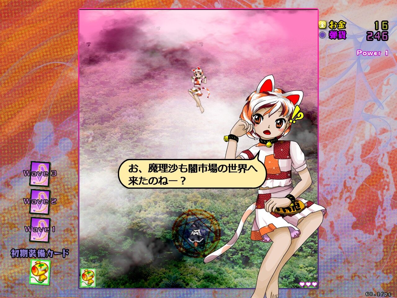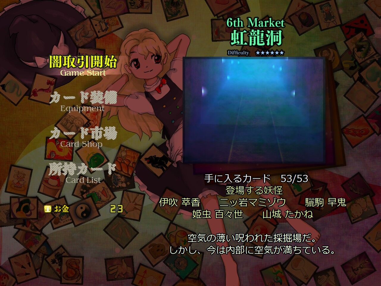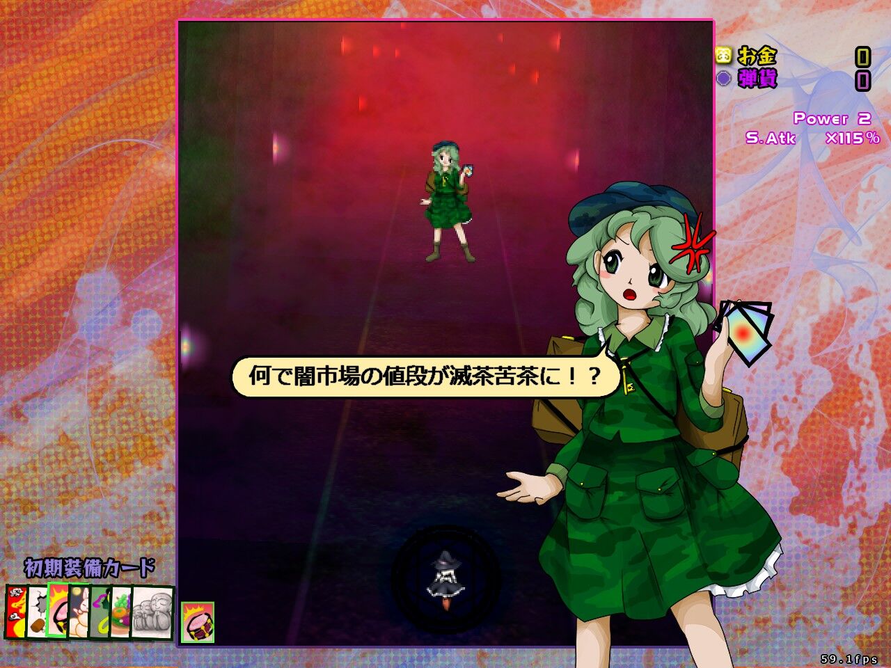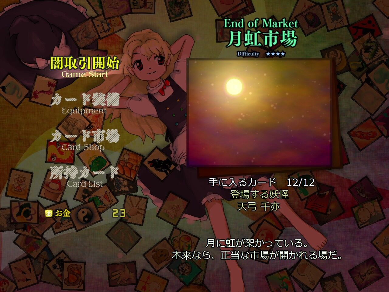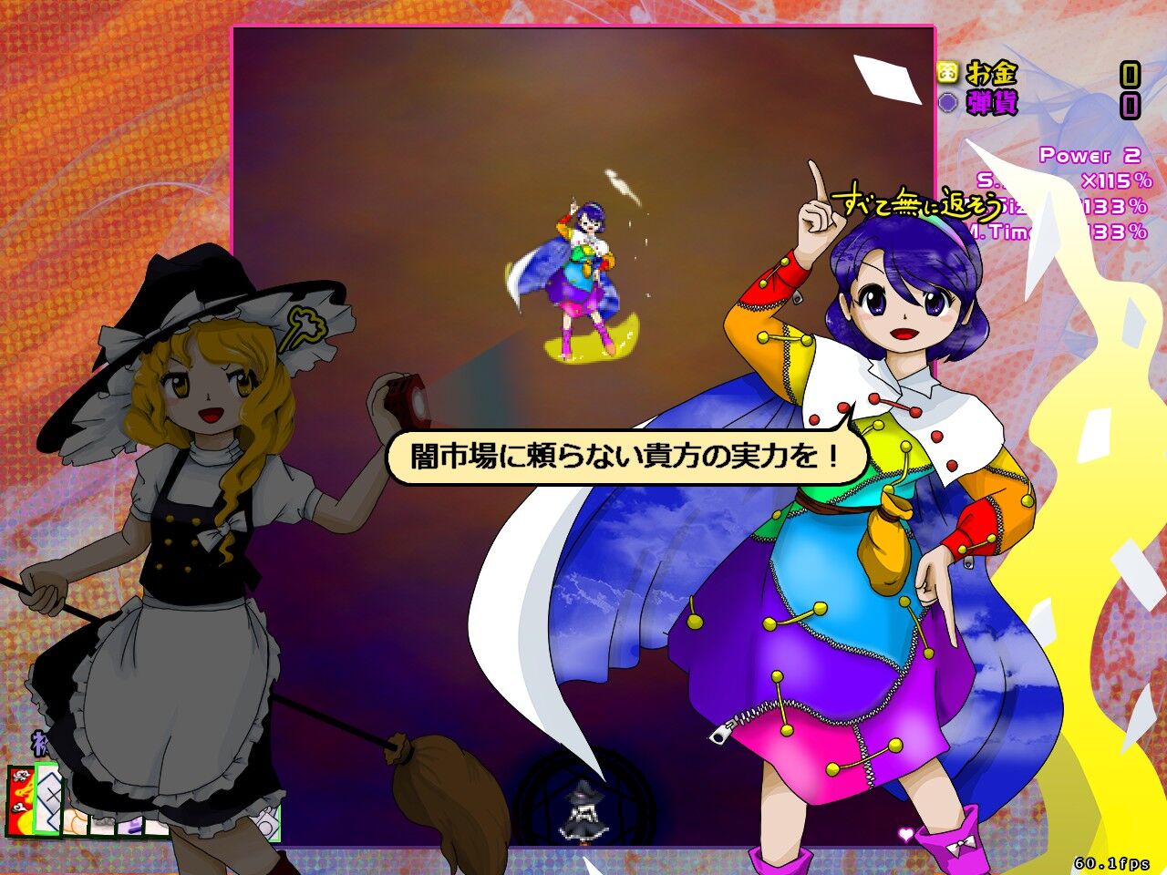 月虹市場とは前作「東方虹龍洞」の最終ステージのタイトル(ステージ名は誰の物でも無い夜空)で、本来なら正当な市場が開かれる場所でもあります。