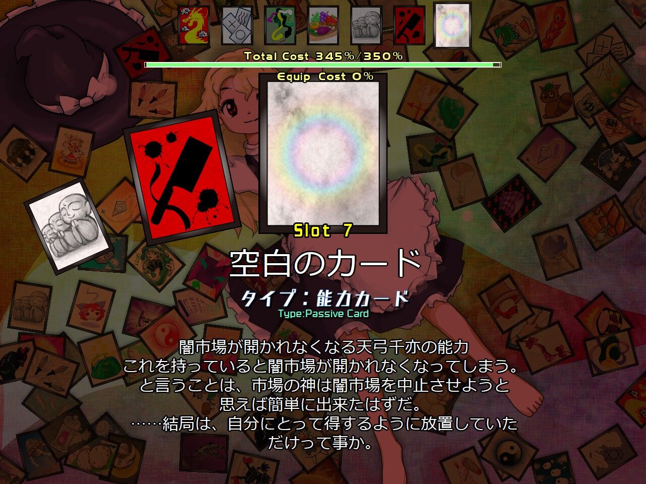 そのため、千亦に「空白のカード」を渡された魔理沙は、それを装備して守矢神社の闇縁日に向かうよう指示されました。