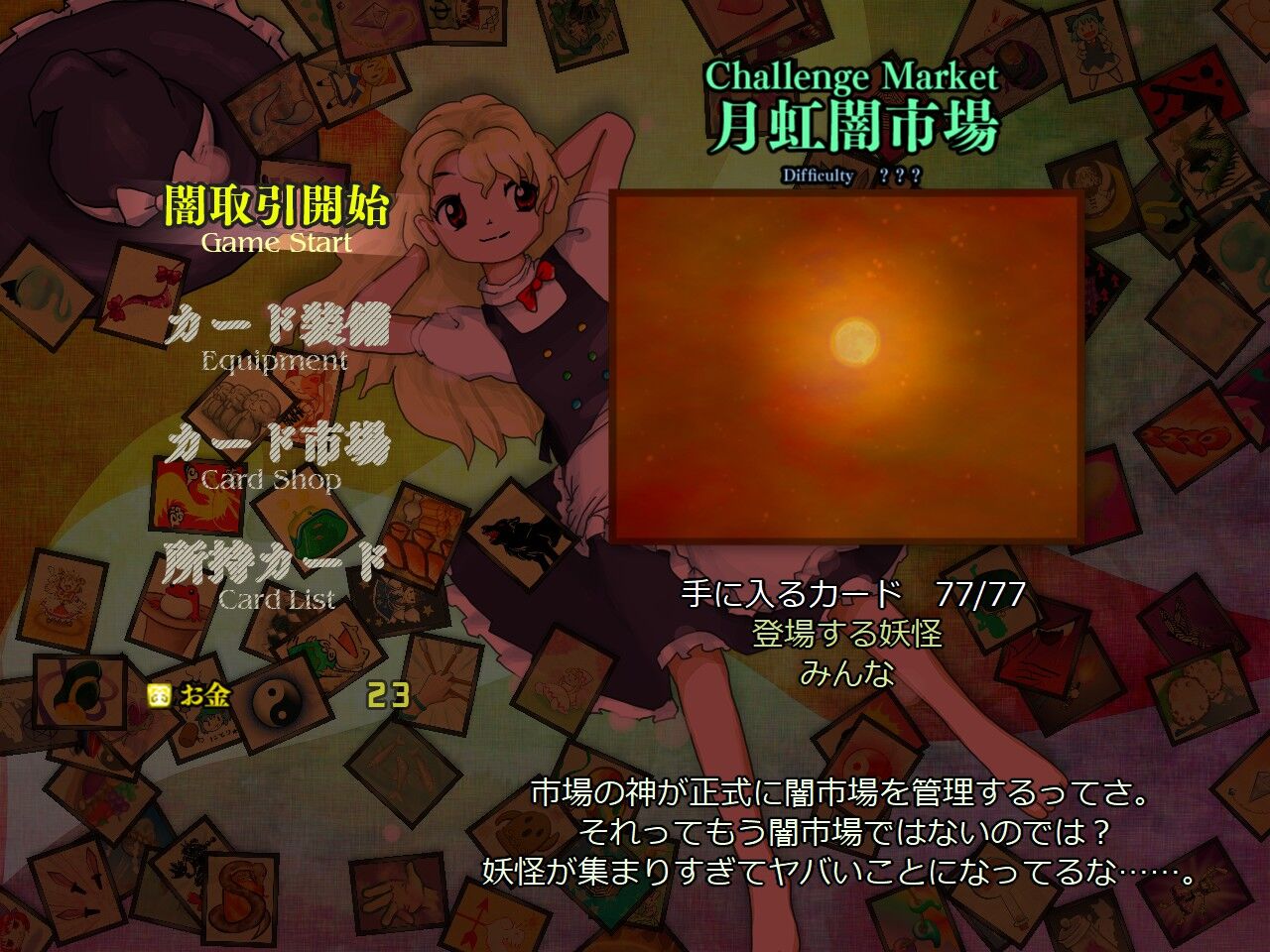 そんな中、蒐集家としてカードの蒐集も兼ねて霧雨魔理沙が闇市場の調査に乗り出したことから、今作のストーリーは始まります。