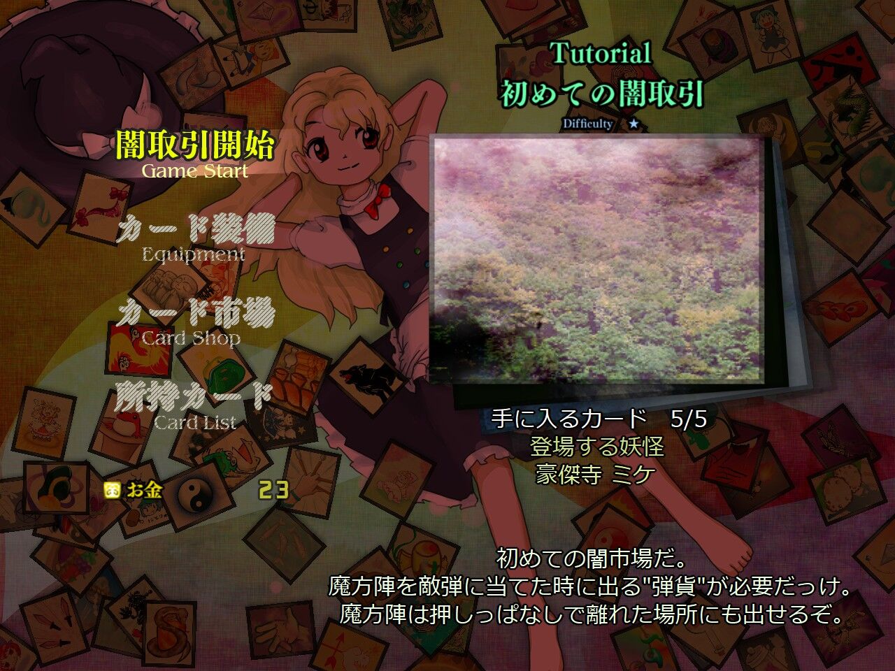 前作では正規のカードの売人だったミケですが、今作では闇市場にも関わっており、チュートリアルでは魔理沙に闇市場のルールを教える役割を果たしました。