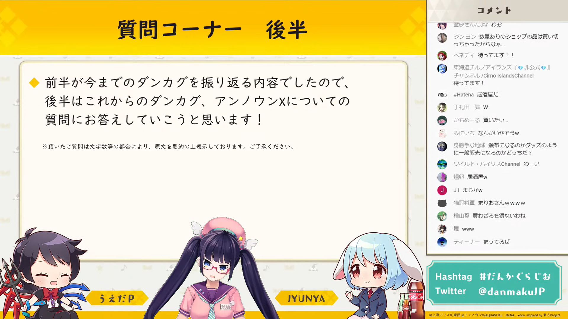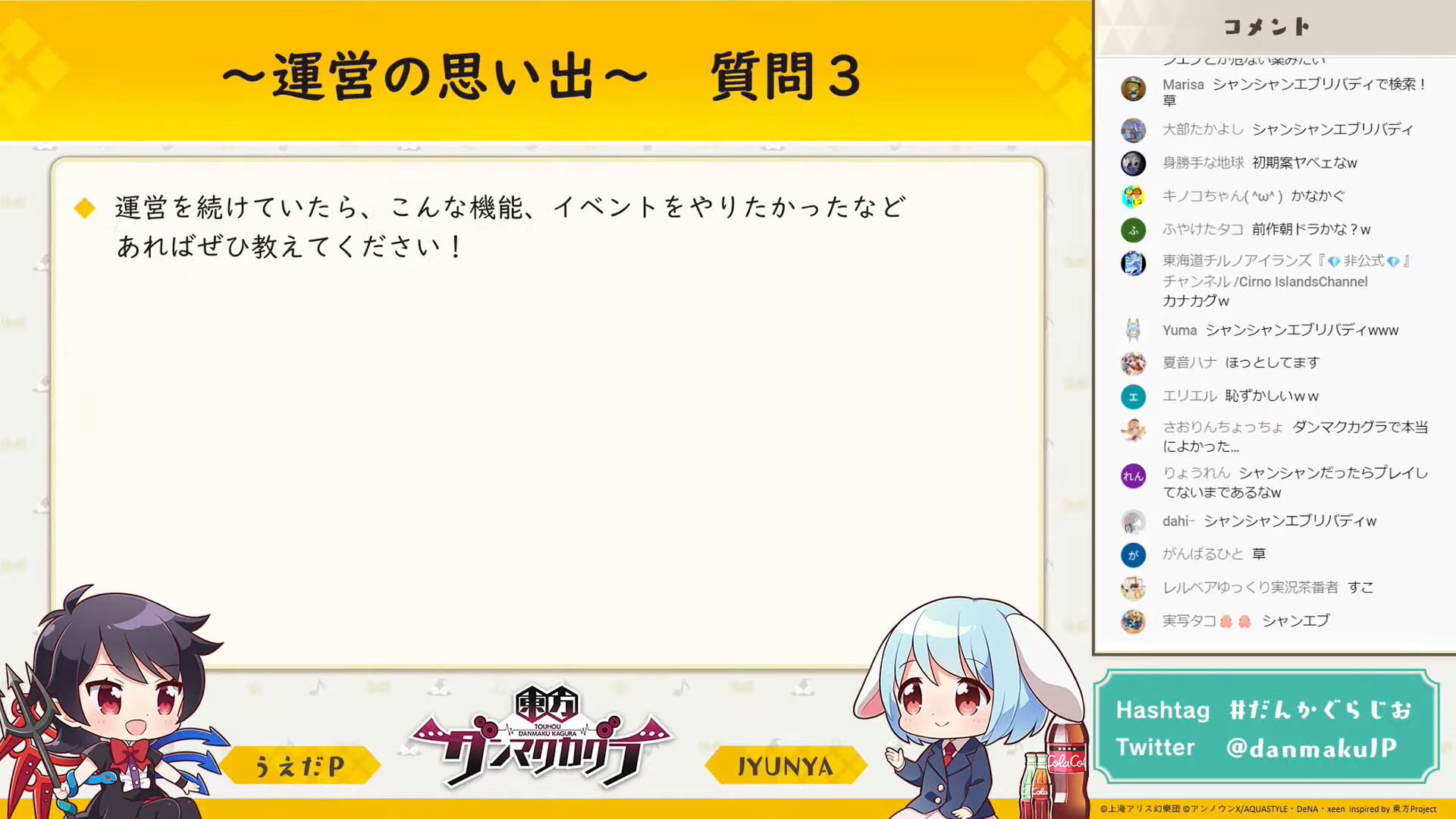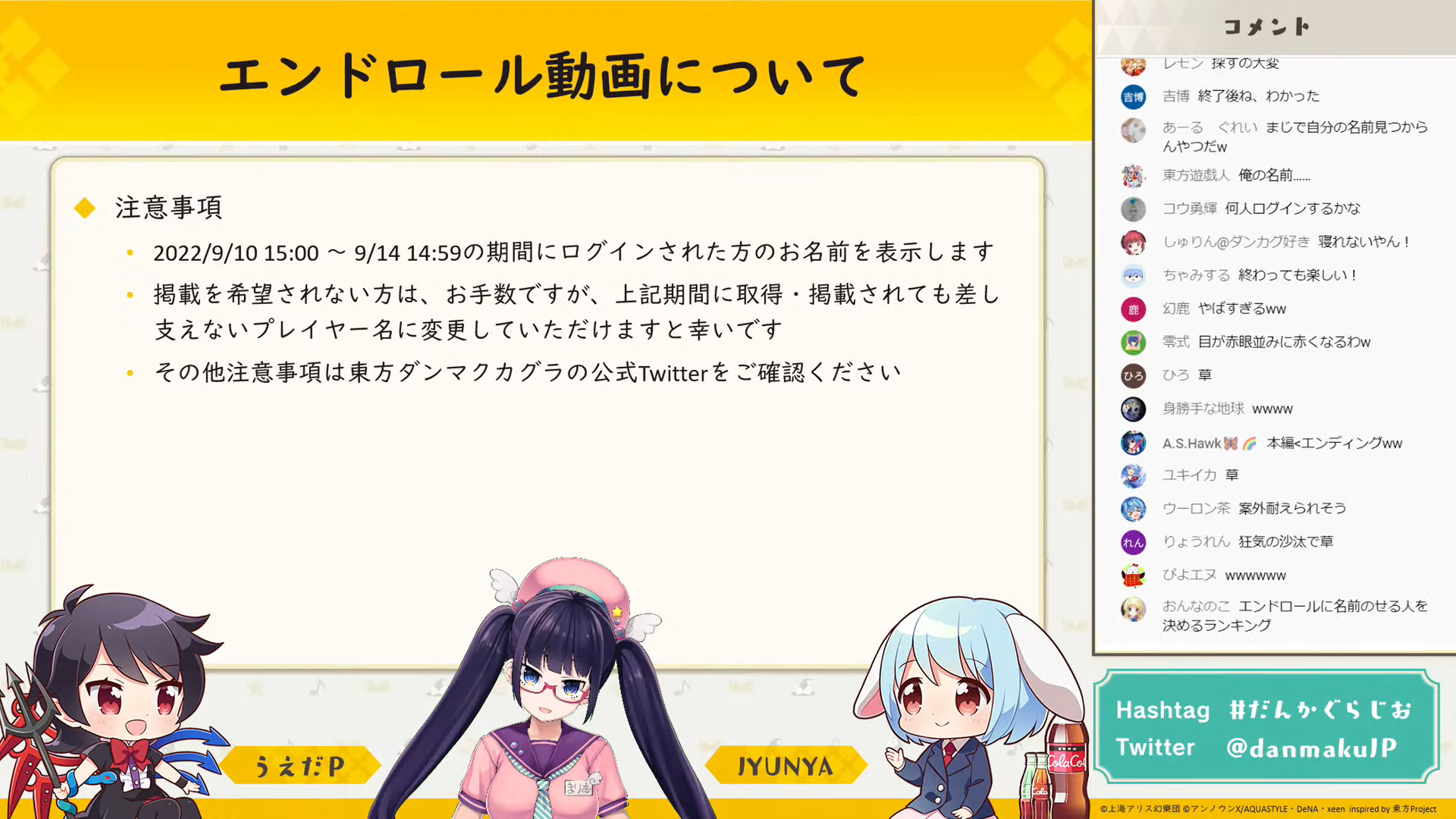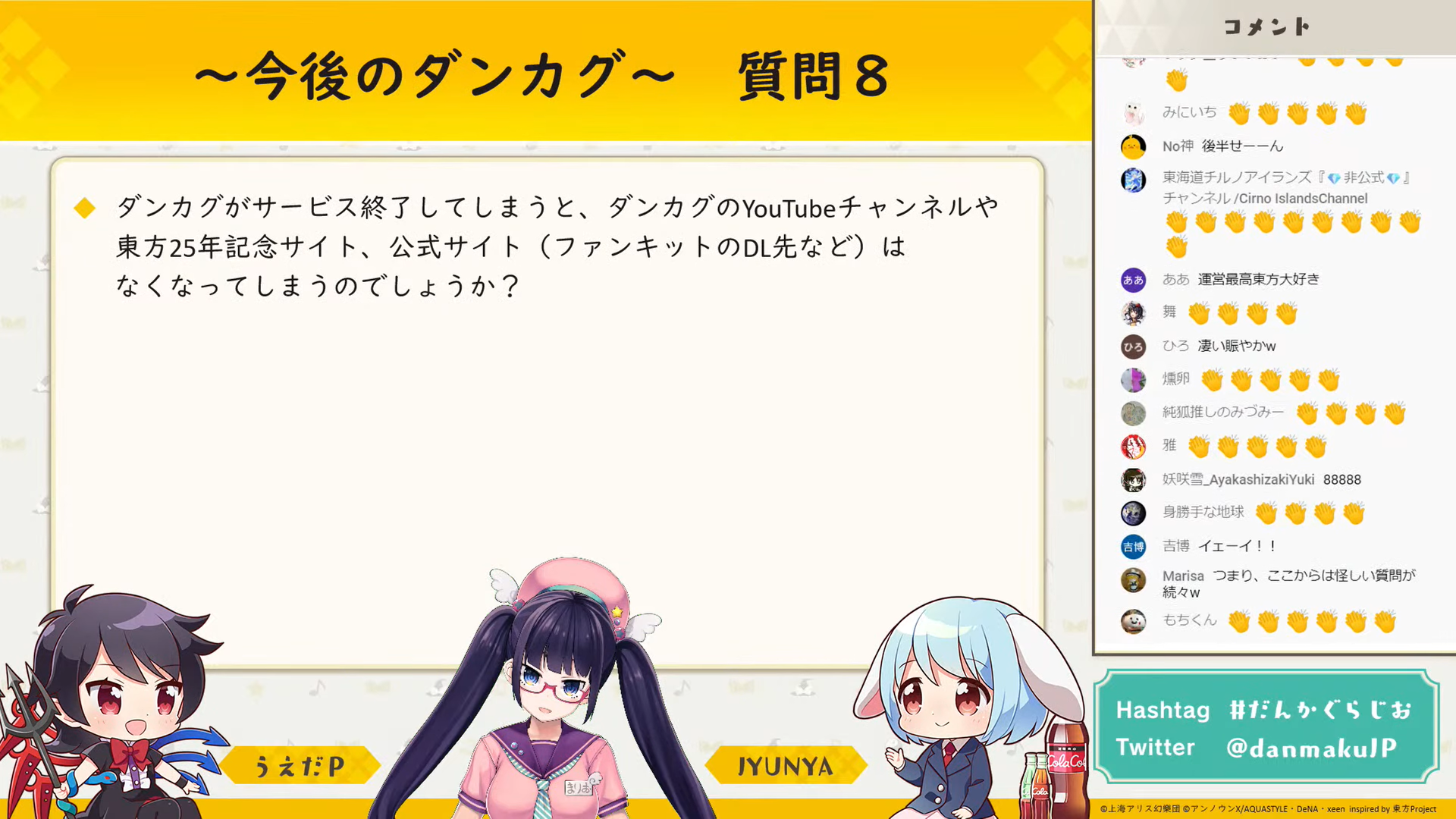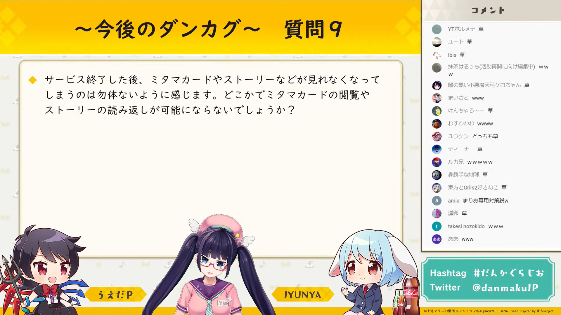 初回から追っている身としてはとても悲しく、お二人が東方について楽しそうに話していたり、興味深い裏話が聞けるのが好きで、実は毎回「ダンマク祭」より楽しみにしていました。