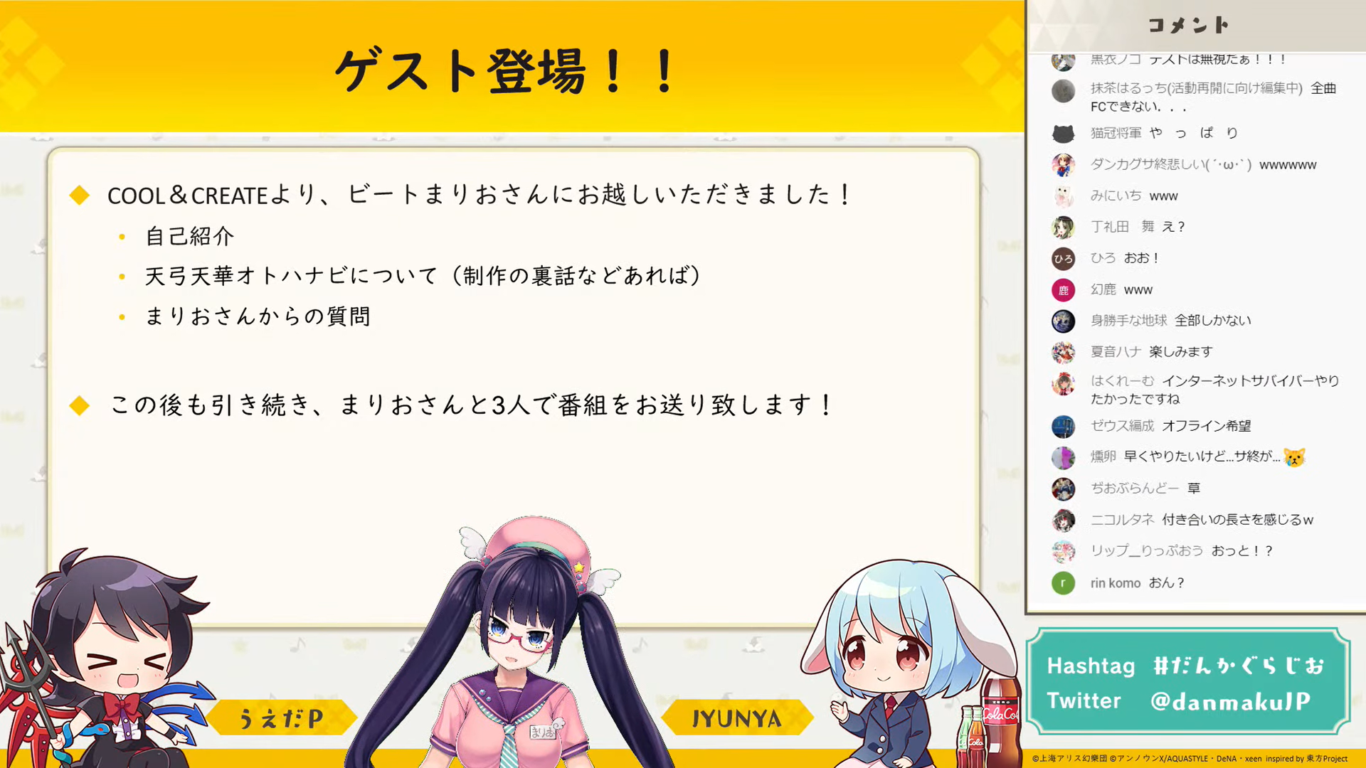 前回の放送から約5カ月ぶりとなる今回の「だんかぐらじお」は、約2時間以上に渡る内容となり、ユーザーからの質問コーナーや一部未公開だった10月以降の楽曲紹介が行われたほか、初となるゲストも登場し大きく盛り上がる放送となりました。