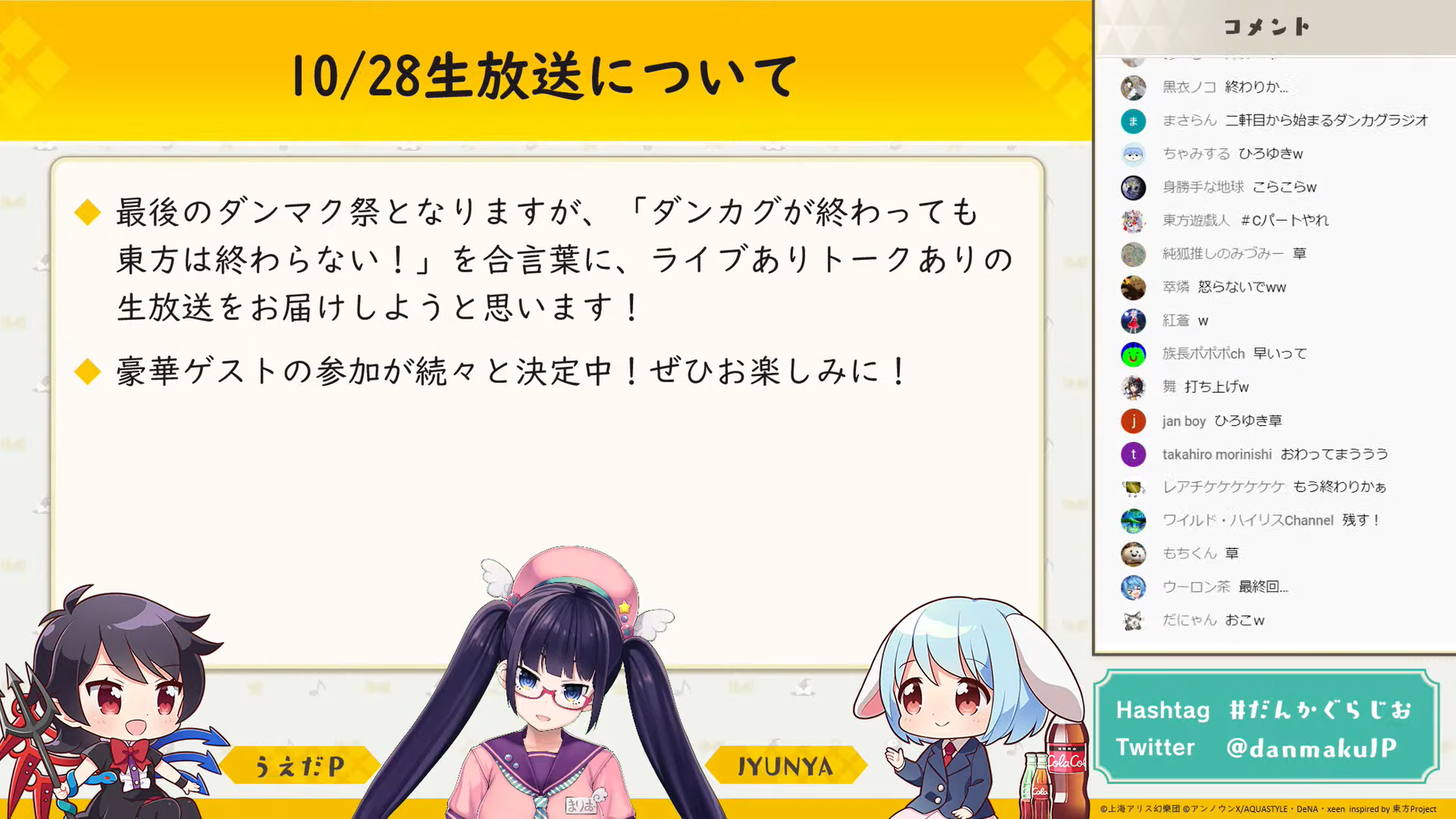 最後に10月28日のサービス終了当日に放送される最後の「ダンマク祭」の告知が行われました。