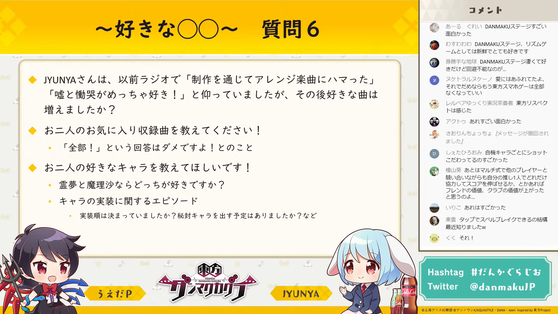 この質問ではお二人が楽しそうに東方の好きなものについて回答されていました。
