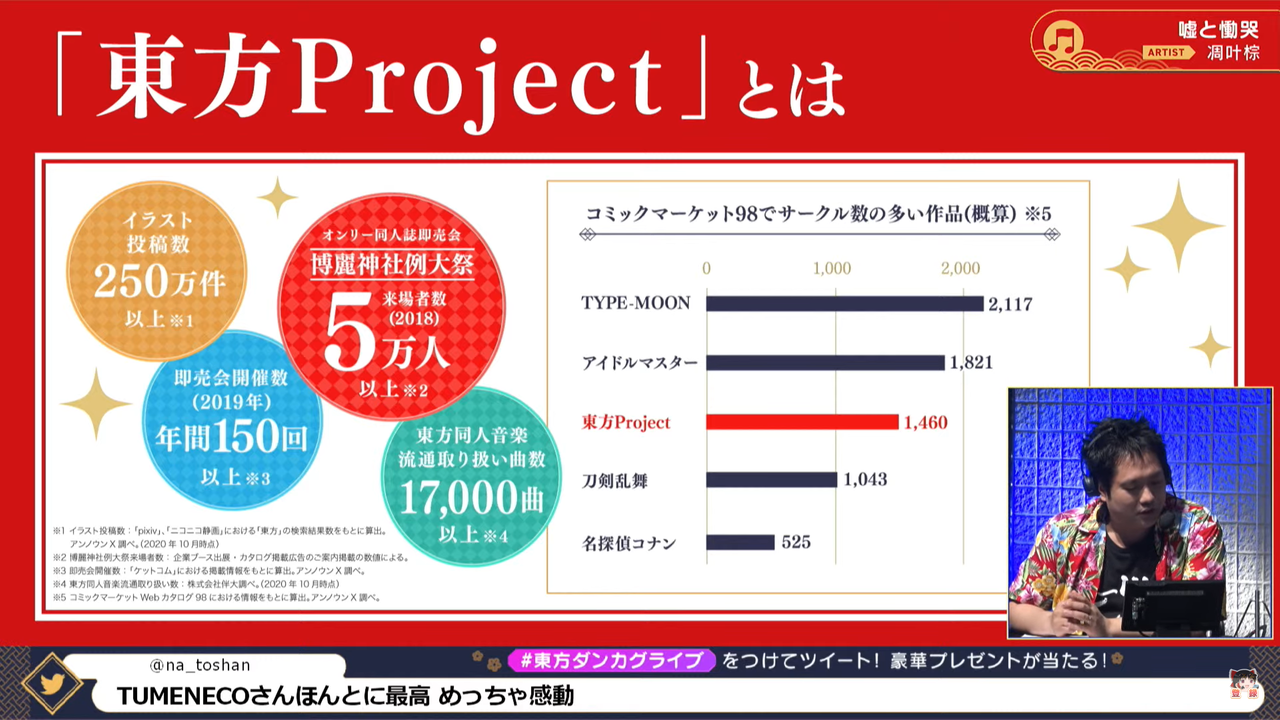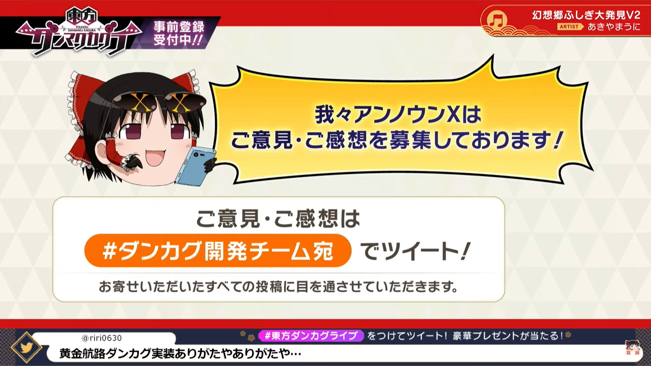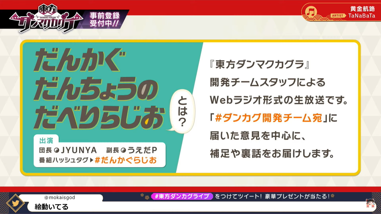 さらに番組の開始早々「東方ダンマクカグラ」書き下ろし楽曲が発表されることも告知され、思わぬサプライズに視聴者も早速盛り上がり始めました。